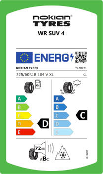 Зимната гума Nokian Tyres WR SUV 4 представлява сигурно и надеждно решение за спортни SUV автомобили и кросоувъри. Тя е разработена специално за централноевропейските шофьори на SUV автомобили. Благодарение на отличното сцепление на мокра повърхност и прецизната управляемост, моделът осигурява най-добрата ефективност върху сняг, киша и в проливен дъжд. Здравата и устойчива конструкция в комбинация с арамидните странични стени гарантират на гумата устойчивост срещу пробиване и разкъсване, на които може да бъде изложена при шофиране.